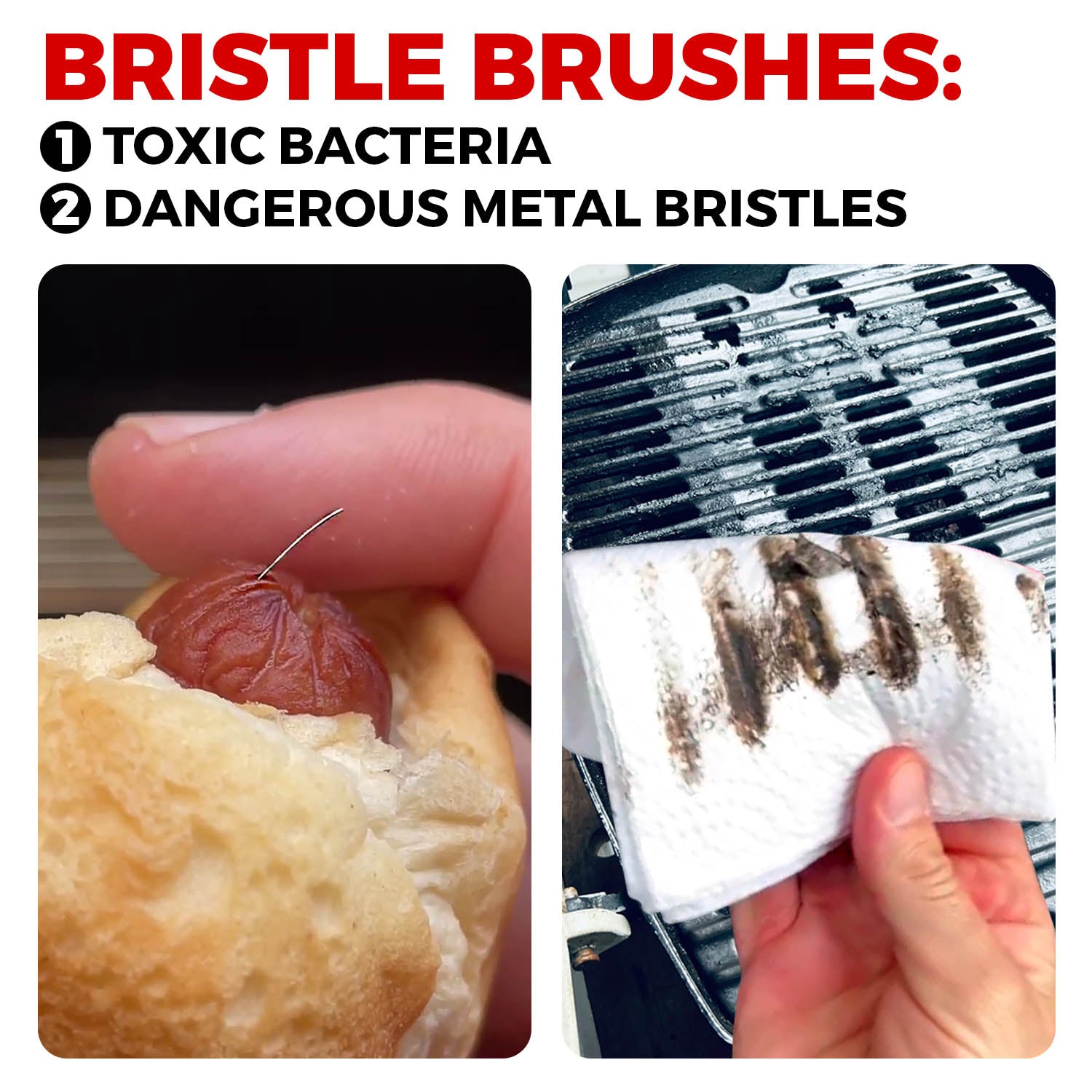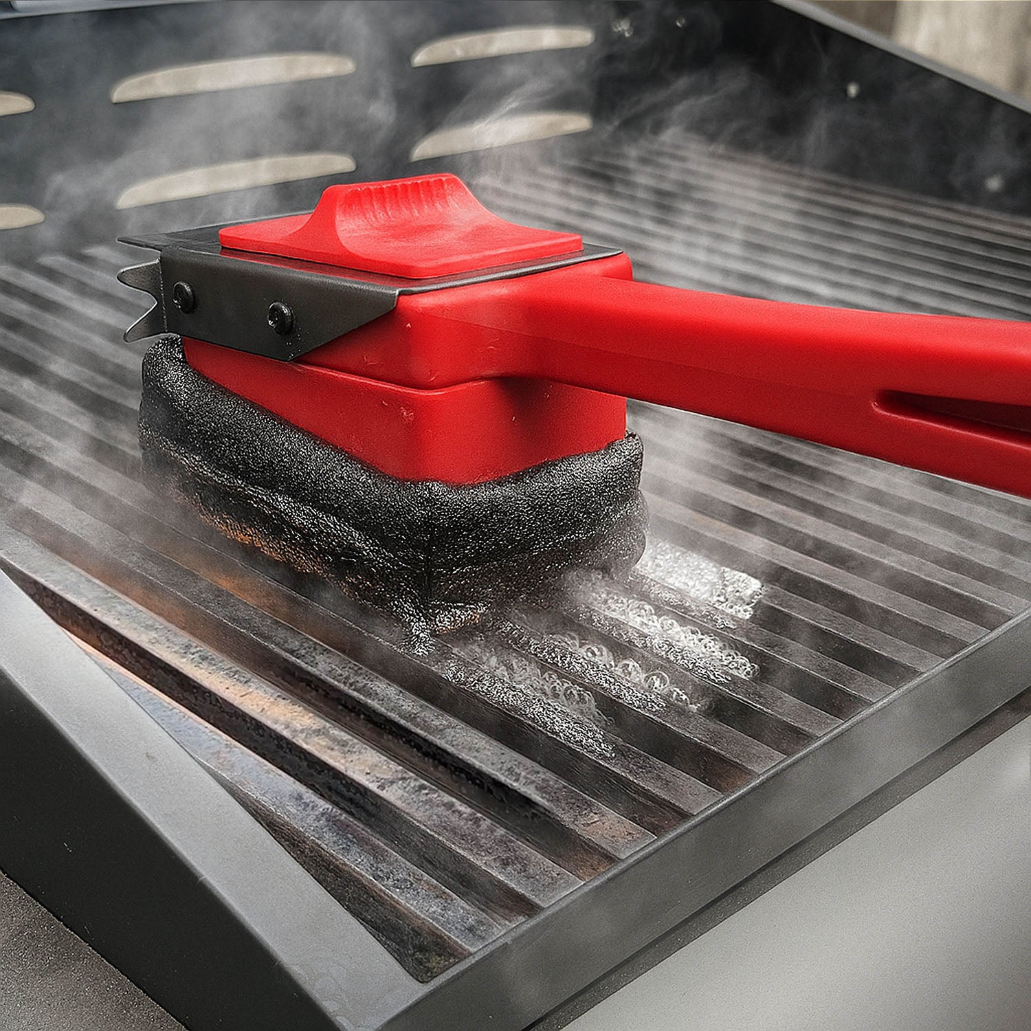 - CLEAN WITH STEAM! Once you try our bristle-free grill brush, you’ll never go back to a traditional BBQ brush again. Just dunk our flame-resistant Kevlar-reinforced sponge in water before scrubbing your hot grill to release the power of steam and clean your grill like never before! It’s like a spa day for your grill! Come on, you know it deserves it!