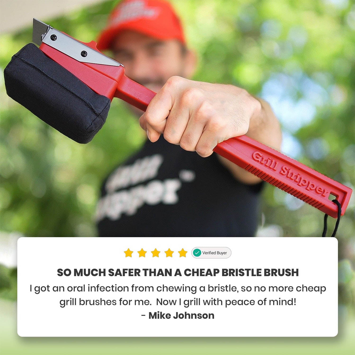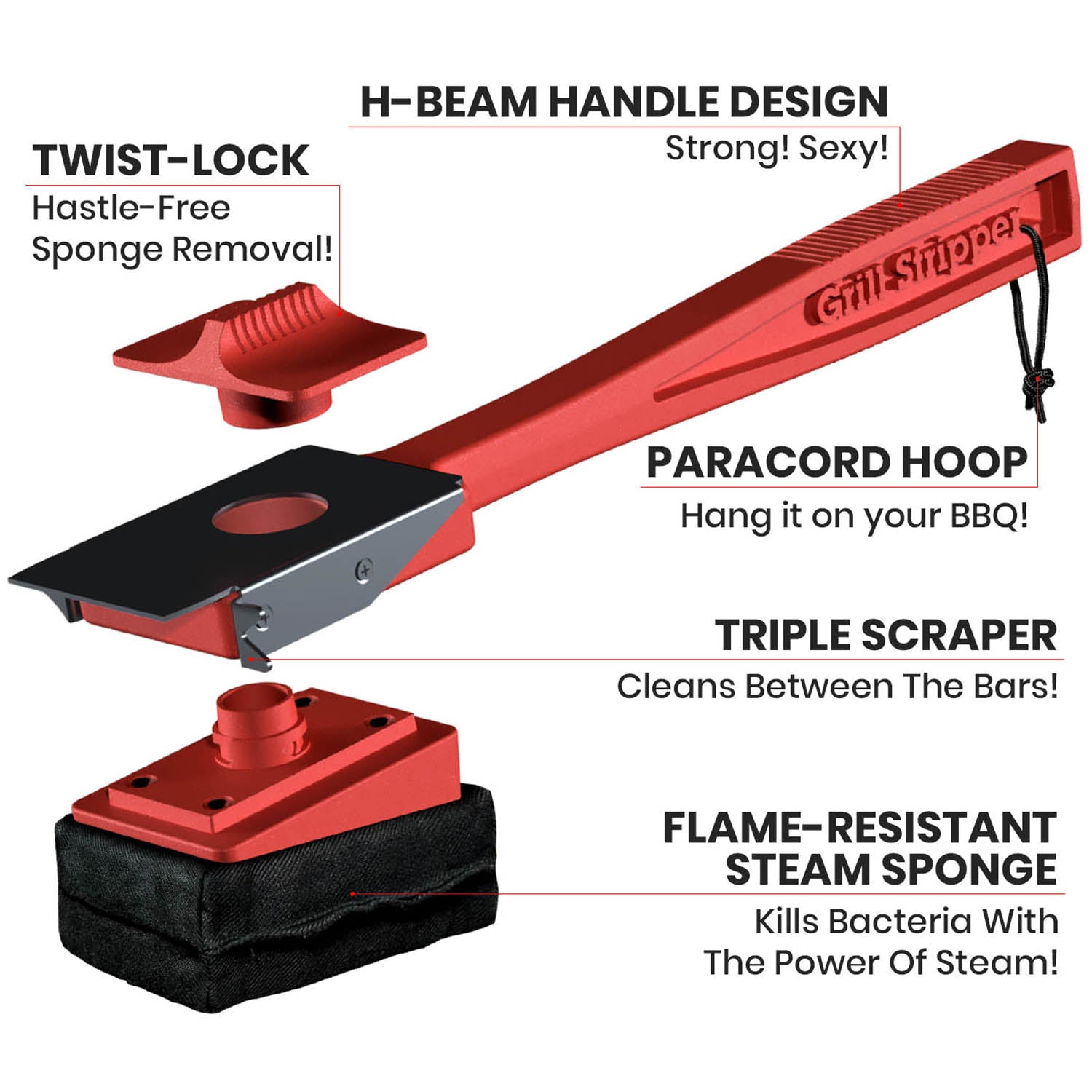 - BAD-A$$ LOOKS! Come on, you were already thinking it! Just look at those photos! When designing Grill Stripper, we wanted to create not only the BEST PERFORMING grill cleaning brush on the market, but the BEST LOOKING BBQ grill cleaners money can buy. And I think we did it. From our strong and unique H-beam handle (inspired by steel construction girders) and textured handle grips, to our black and red colorway and embossed logo, Grill Stripper is in a league of its own.